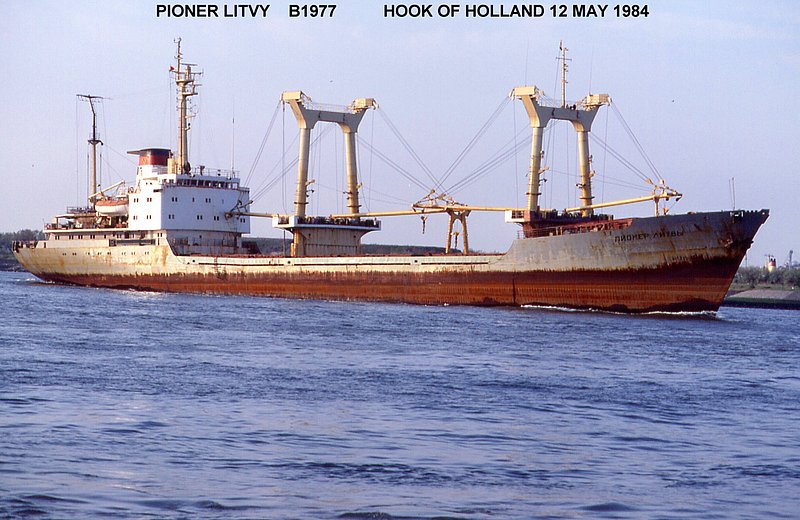 Pioner Litvy, still soviet flag and grey hull, Hook of Holland 12-05-1984 - Photo : David Gallichan (